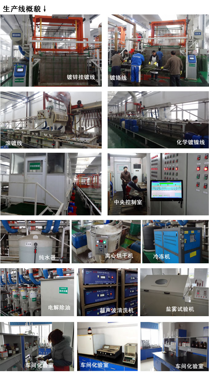 其中實(shí)驗(yàn)室和化驗(yàn)室內(nèi)專業(yè)配備了多臺(tái)先進(jìn)的檢測(cè)設(shè)備、計(jì)量設(shè)備和百余種化學(xué)試劑,并有多名具有中級(jí)職稱的專業(yè)技術(shù)人員管理。檢測(cè)和計(jì)量設(shè)備主要有分光光度計(jì)、色差儀、電子天平、PH計(jì)、高速離心機(jī)、滴定分析儀、電解式測(cè)厚儀、鹽霧機(jī)、濕熱機(jī)、哈式槽、漆膜硬度計(jì)等。為公司對(duì)電鍍?cè)系臋z測(cè)和篩選,電鍍工藝的現(xiàn)場(chǎng)維護(hù)和監(jiān)控,產(chǎn)品質(zhì)量的測(cè)試和監(jiān)控,以及對(duì)新產(chǎn)品、新工藝的研發(fā)提供了強(qiáng)大的技術(shù)保證。